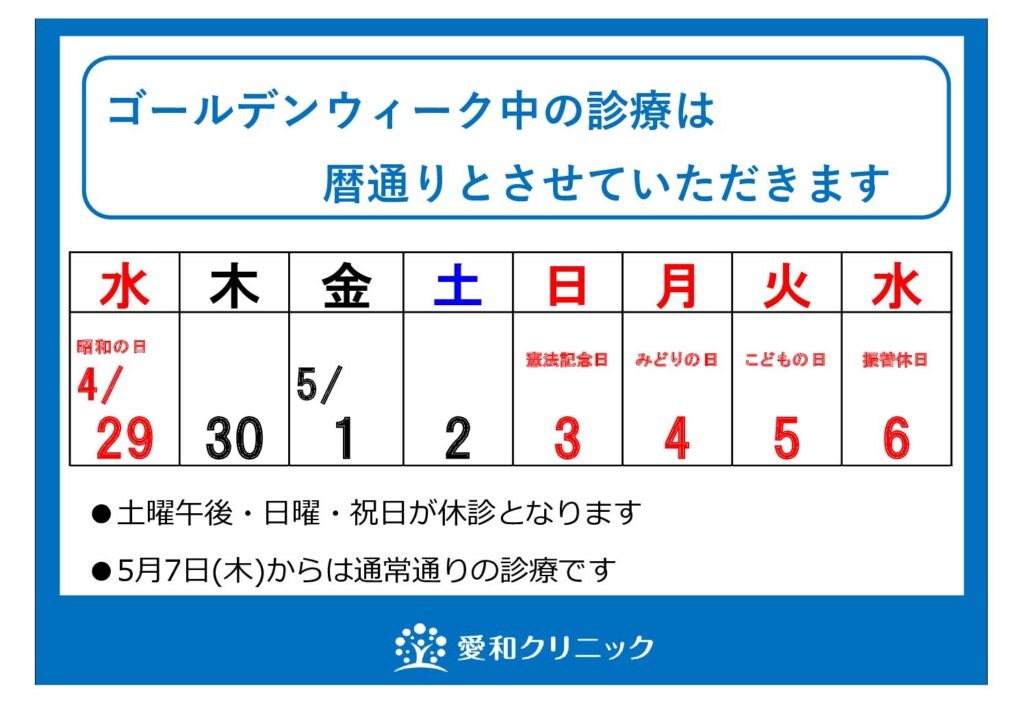 ゴールデンウィーク期間の休診日について